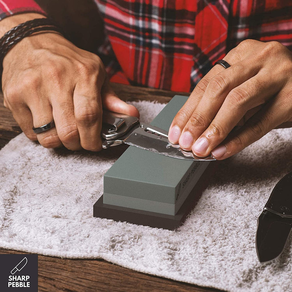 Sharp Pebble Knife Sharpening Stones Kit with 400/1000 and 1000/6000 Grit with Flattening Stone & Angle Guide