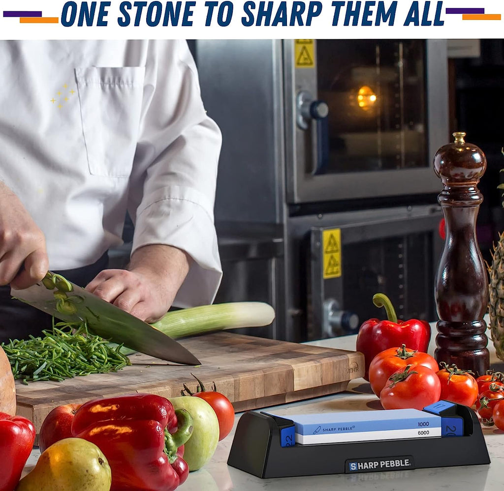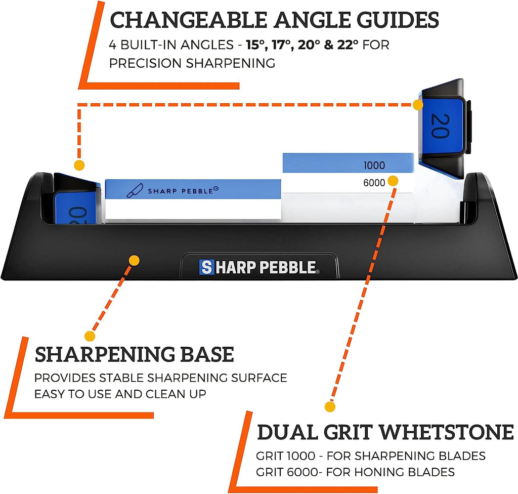 Sharp Pebble Knife Sharpening Stone Kit-Grit 1000/6000 Wet Stone-Built In Angle Guides 15/17/20/22 Degrees with Base