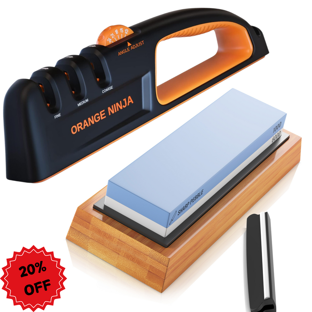 - Ultimate Sharpening System: Achieve a professional edge with the Sharp Pebble 1000/6000 Whetstone, then maintain it effortlessly using the Orange Ninja Knife sharpener.